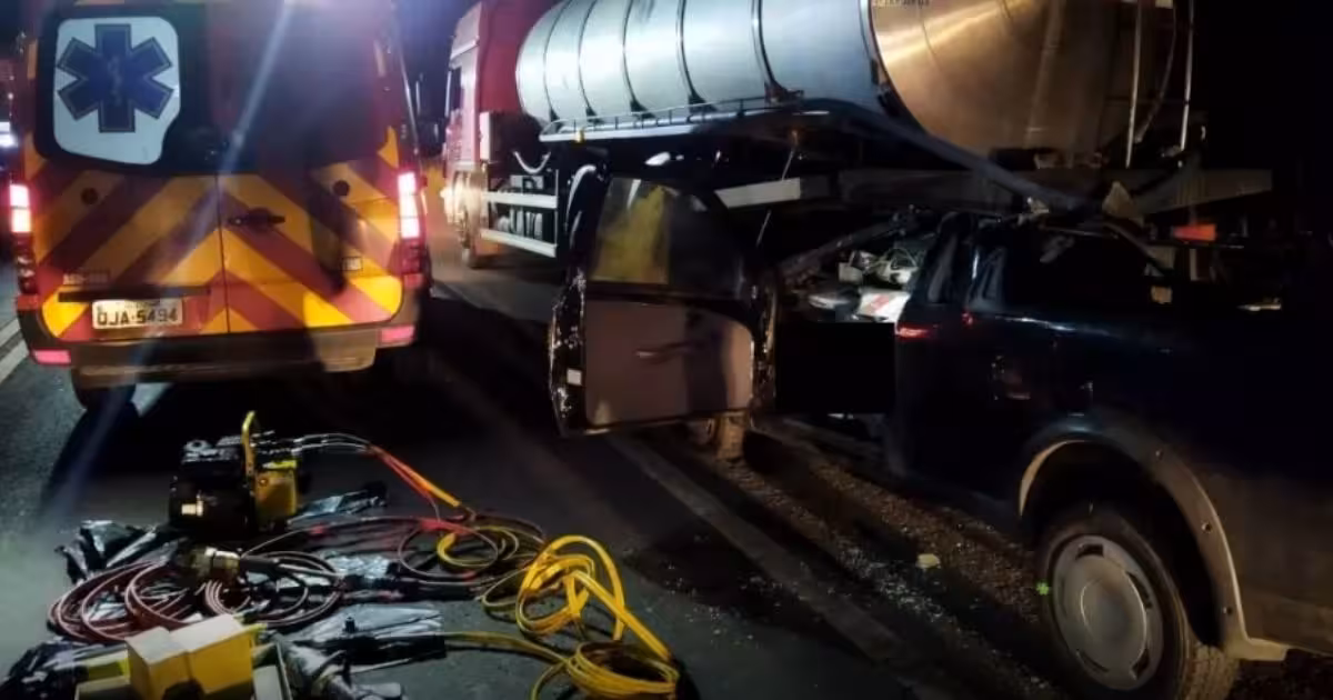 Quando os socorristas chegaram ao local, os três ocupantes do Strada estavam encarcerados, com múltiplas fraturas pelo corpo e sem sinais vitais. O motorista do caminhão, de 43 anos, saiu ileso e permaneceu no local.