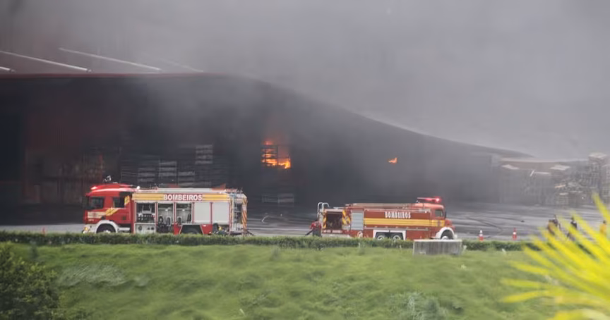 – VÍDEO – Bombeiros combatem fogo em galpão da empresa Irmãos Fischer