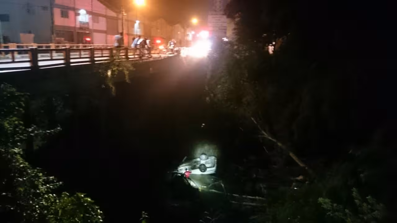 Veículo cai no rio e motorista foge, no Souza Cruz