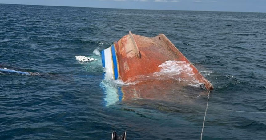 Por motivos desconhecidos, a embarcação fica emborcada (vira de cabeça para baixo) a aproximadamente 4,6 quilômetros do Arquipélago de Tamboretes. Neste momento, é registrado o naufrágio.