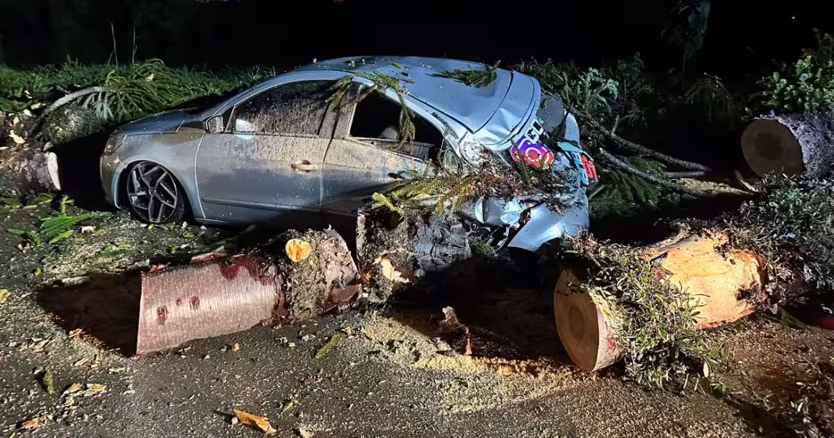Vendaval derruba árvore de 25 metros em cima de carro no Oeste de Santa Catarina