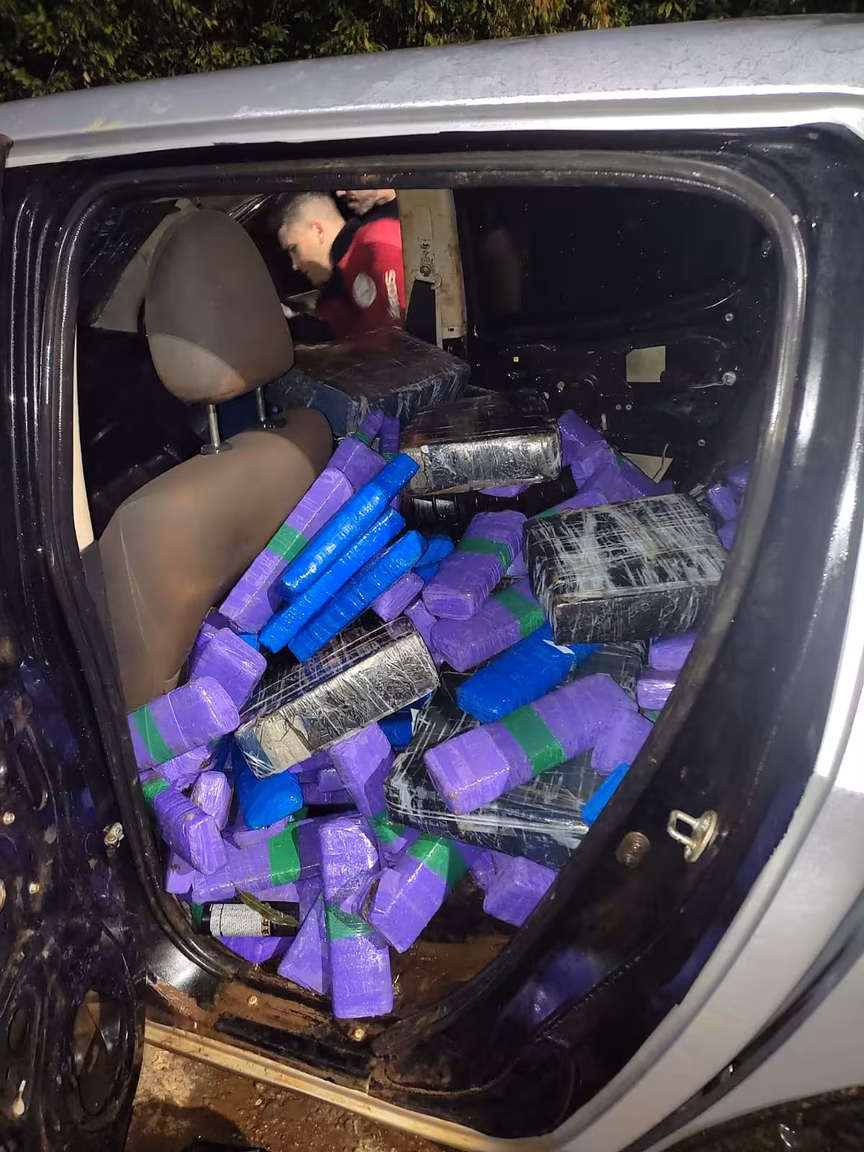 Mergulhadores do Corpo de Bombeiros e uma máquina da prefeitura retiraram a picape da água. Dentro dela, havia grande quantidade de maconha que, após a secagem, pesou 776 quilos.
