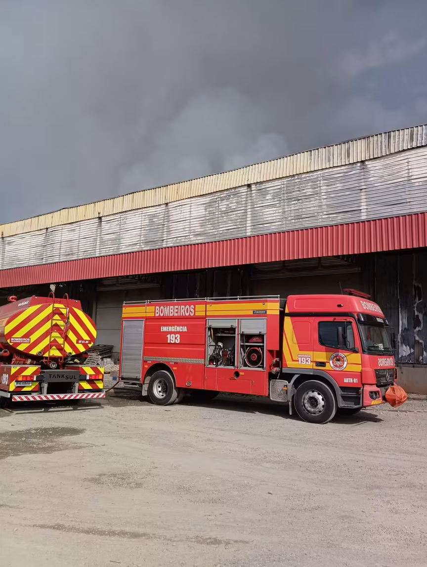 O Corpo de Bombeiros Militar informou que os materiais no interior do galpão são de baixo potencial inflamável, louças, cerâmicas e quadros que estavam em paletes por se tratar de um depósito.