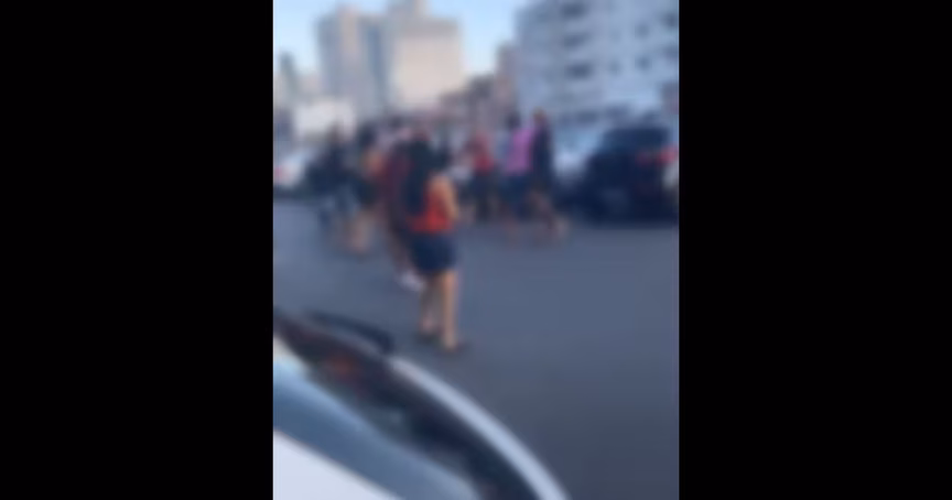 A Polícia Militar esteve no local e informou que uma confusão no trânsito foi a causa da briga.