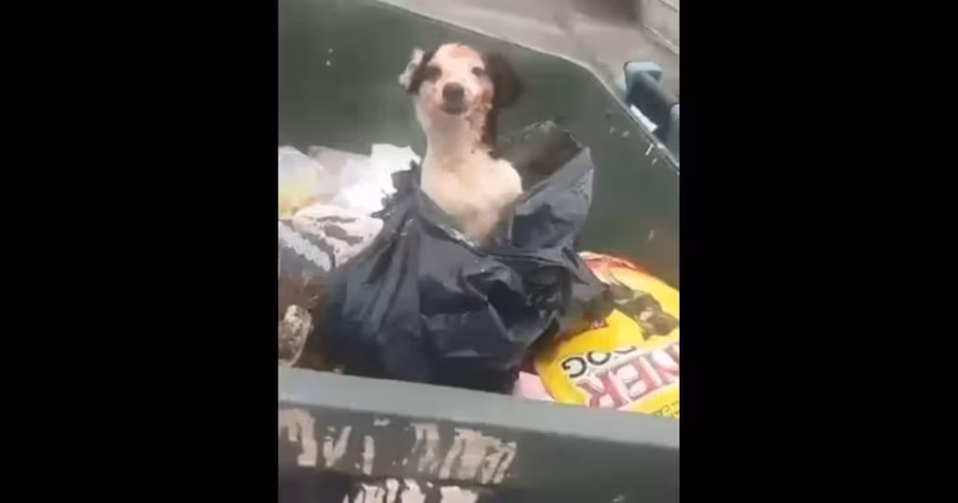 VÍDEO – Cachorra é encontrada dentro de saco em lixeira na Grande Florianópolis