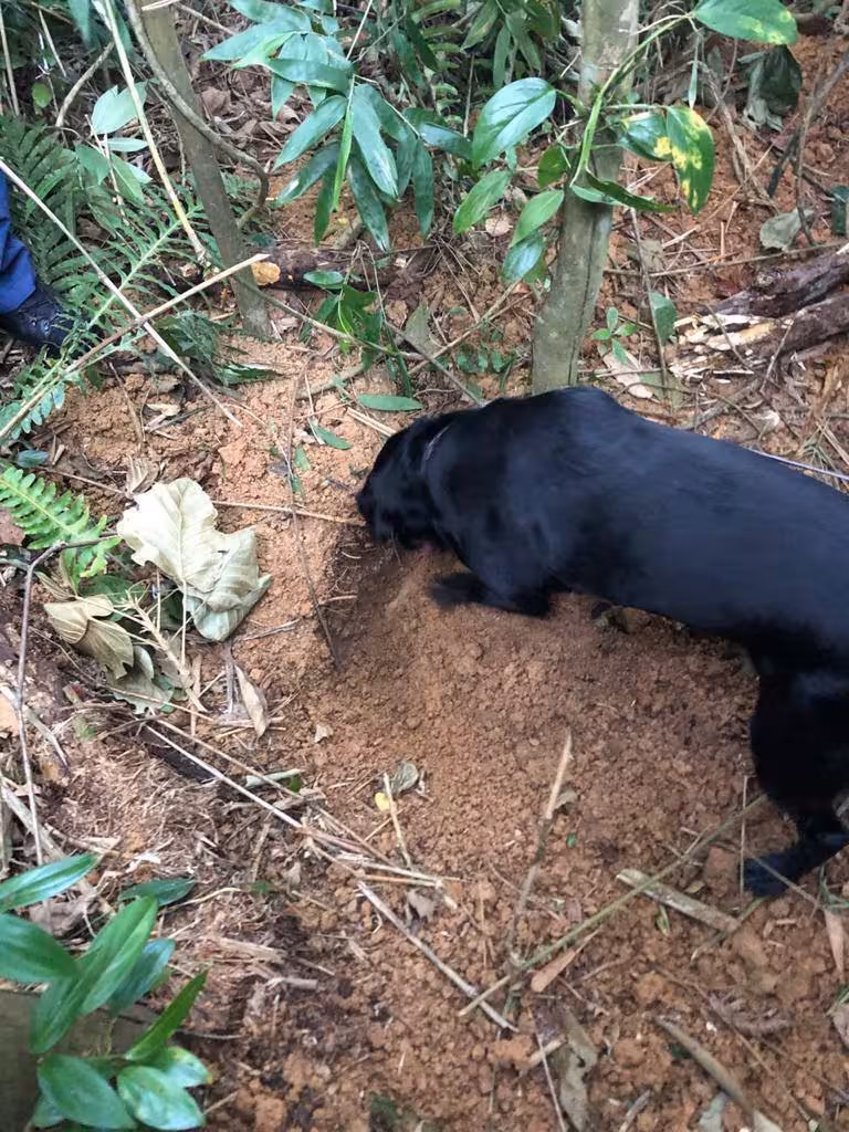 A cadela Zaara, do Corpo de Bombeiros Militar de Brusque, atuou nas buscas do corpo de um homem nesta quinta-feira, 27. Ele foi encontrado enterrado e amarrado nesta manhã, no bairro Itinga, em Araquari, no Norte de Santa Catarina.