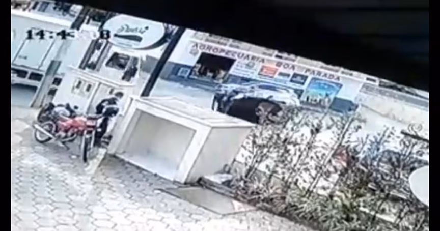 Câmera de segurança registrou o momento em que carro capota na rua Florianópolis, no Primeiro de Maio, em Brusque. Acidente aconteceu por volta das 15h desta quinta-feira, 13, em frente da Panificadora e Confeitaria Panissa.