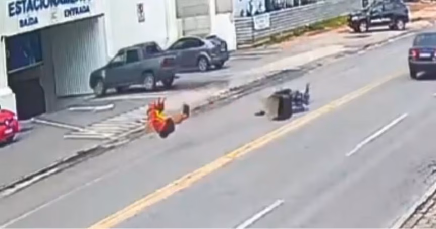 Uma câmera de segurança flagrou a queda de um motociclista na rodovia Antônio Heil, em Brusque. O vídeo começou a circular nas redes sociais na manhã desta quinta-feira, 7, porém, não e possível precisar a data do acidente.