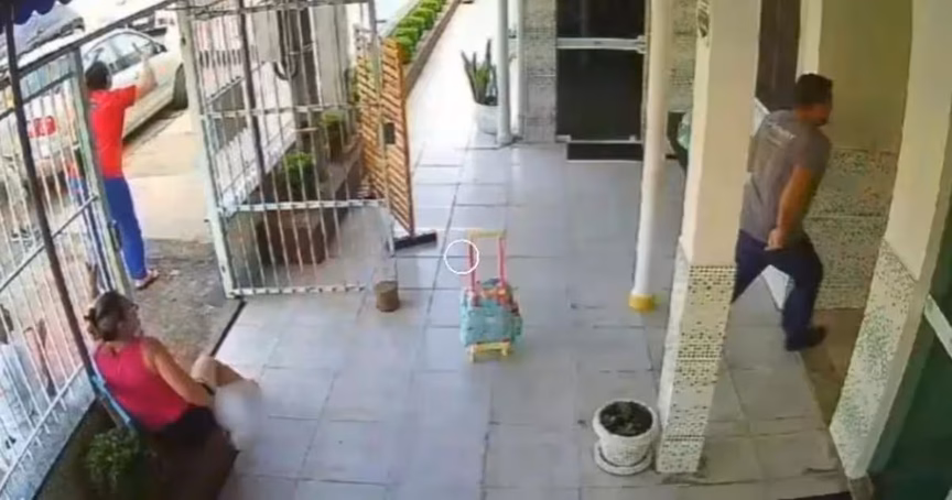 VÍDEO – Câmera grava momento em que mulher e criança são atingidas por tiros em frente creche em Indaial