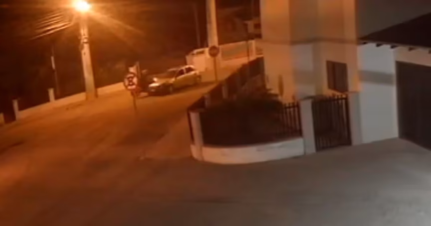 O jornal O Município obteve acesso a uma câmera de segurança que registrou o momento da colisão entre um carro e uma motocicleta no bairro Rio Branco, em Brusque, na noite de quinta-feira, 25.