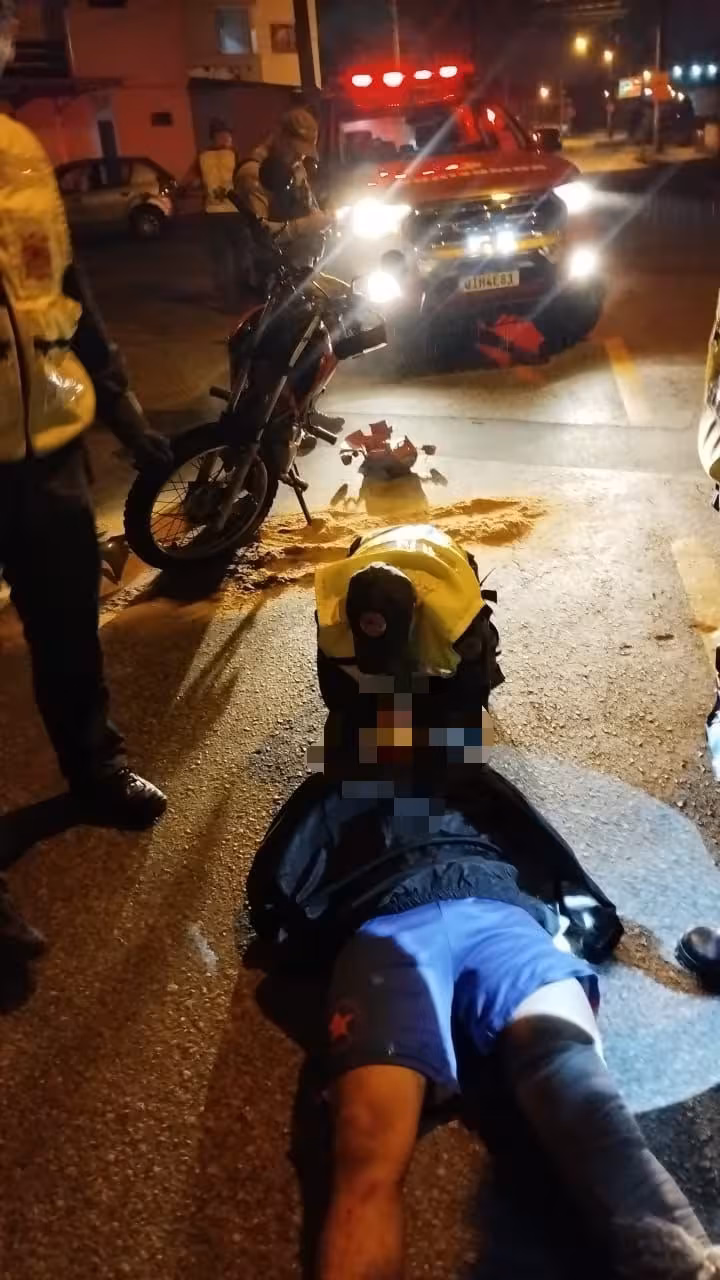 Ao chegar no local, por volta das 22h30, o Corpo de Bombeiros encontrou o homem, de 27 anos, deitado, consciente e orientado. Ele apresentava escoriações nos membros inferiores.