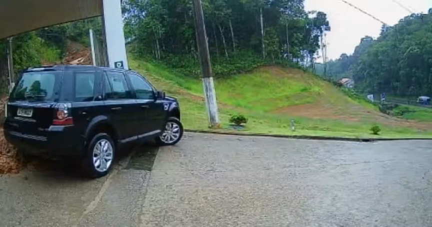 VÍDEO – Câmeras de segurança flagram momento em que deslizamento atinge carro no bairro São Pedro, em Brusque