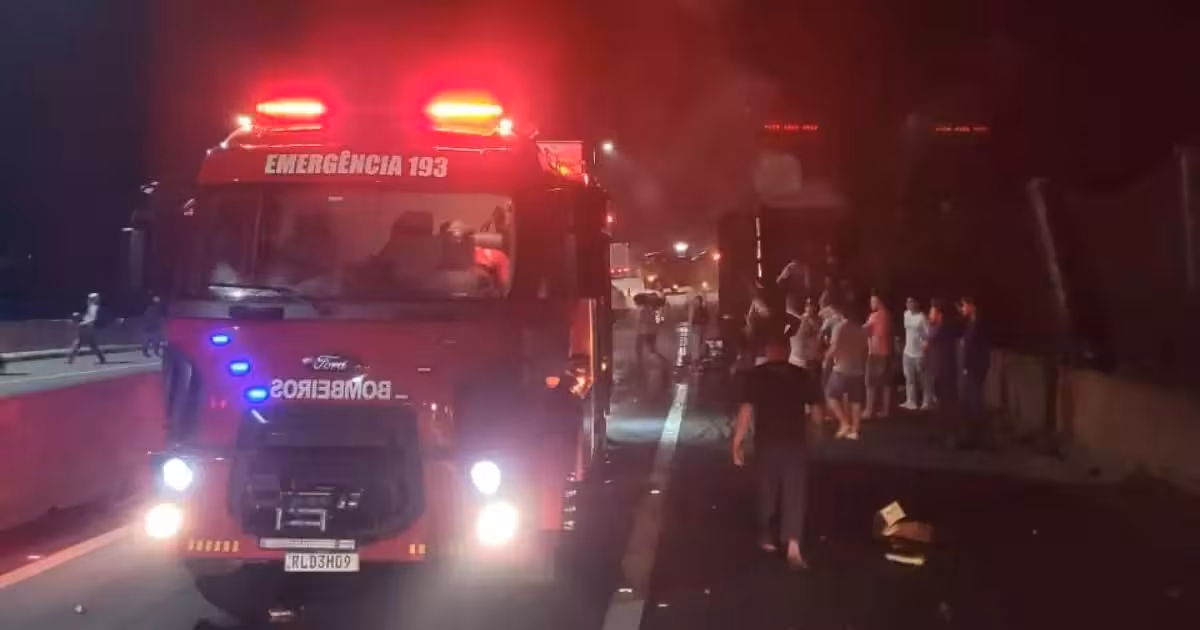 Segundo o relatório dos bombeiros, a carreta carregava um contêiner com cerca de 30 mil quilos de carne.