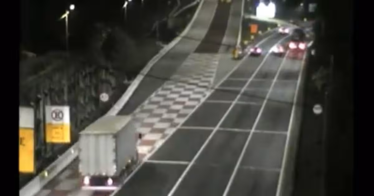 Um caminhão carregado com 14 toneladas de fruta ponkan adentrou uma área de escape na BR-376, entre Santa Catarina e Paraná. O momento foi registrado pela câmera de monitoramento da Arteris Litoral Sul na noite desta quarta-feira, 7.