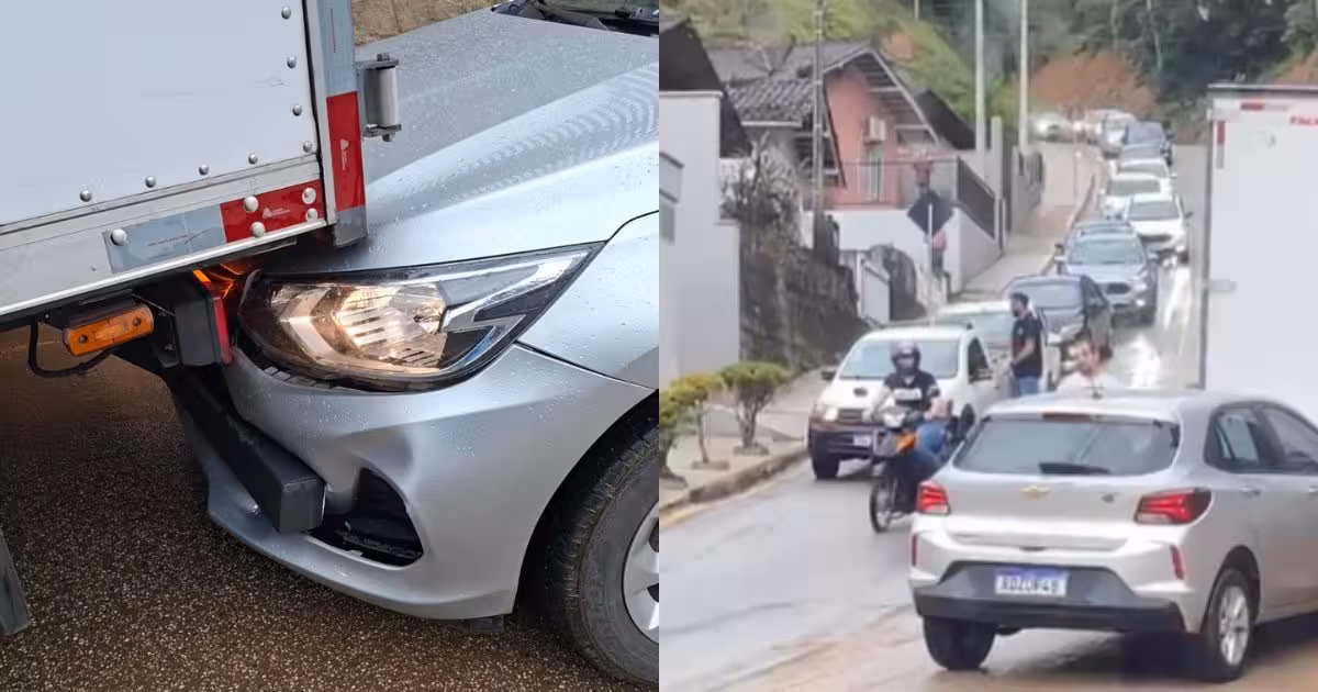 VÍDEO – Caminhão desce desgovernado no morro da Gustavo Halfpap e atinge carro em Brusque