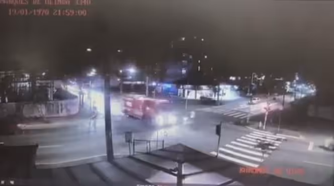 O caminhão estava em deslocamento para uma ocorrência de incêndio. Conforme um vídeo de uma câmera de monitoramento mostra, o motociclista e o caminhão colidiram lateralmente.