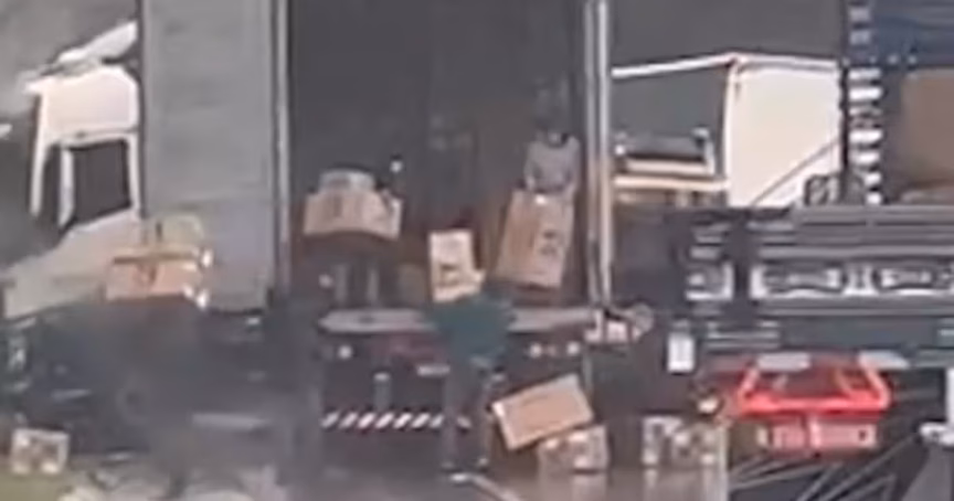 VÍDEO – Caminhão que transportava carga para Havan é saqueado após acidente