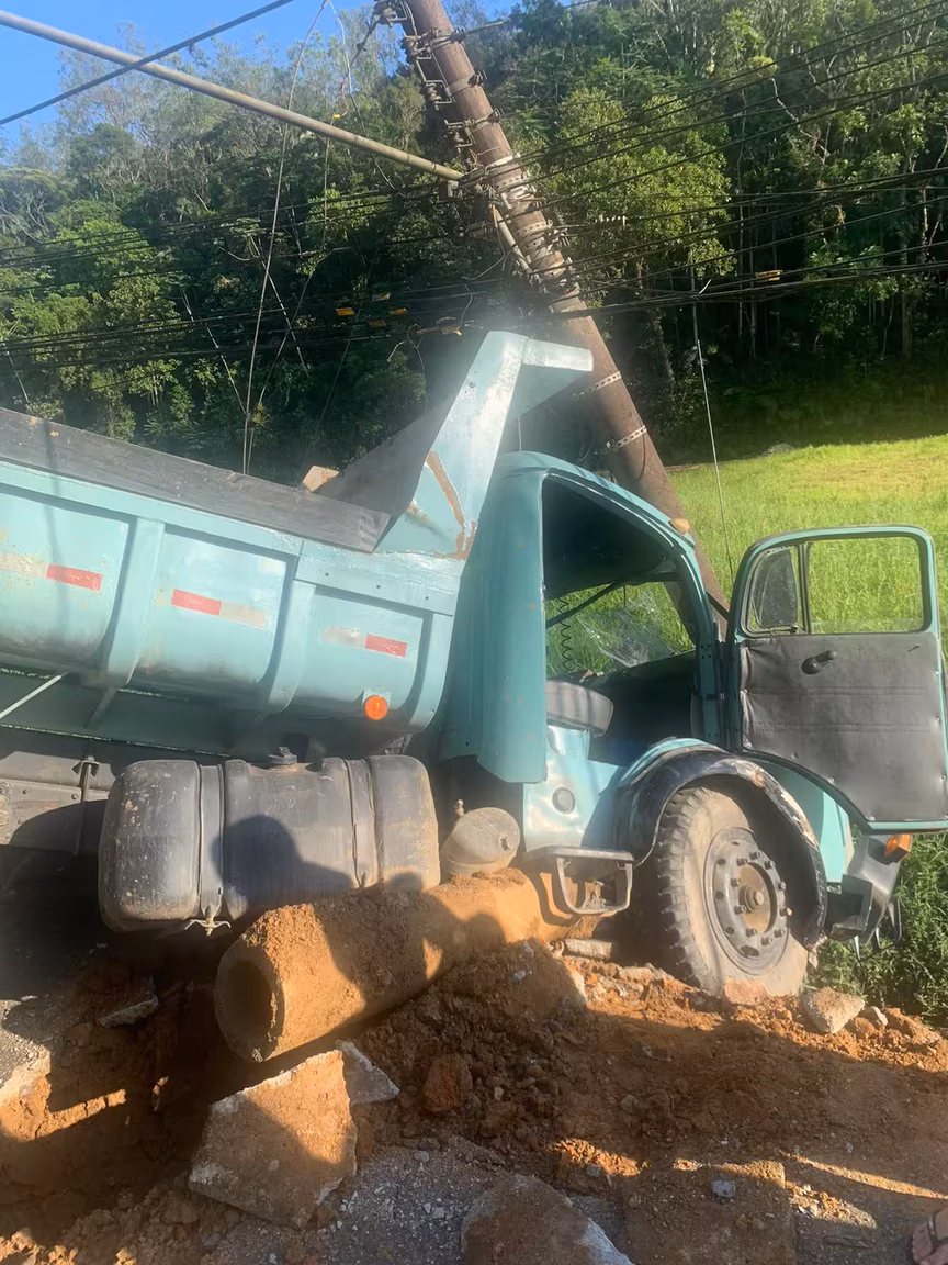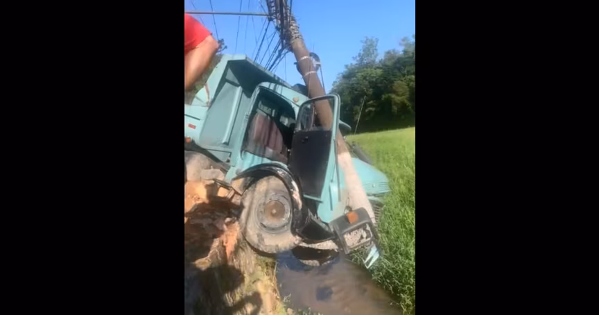 VÍDEO – Caminhão sai da pista e colide contra poste no Primeiro de Maio, em Brusque
