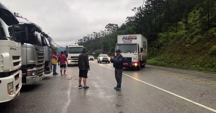 VÍDEO – Caminhoneiros bloqueiam rodovia Pedro Merizio, entre Brusque e Botuverá