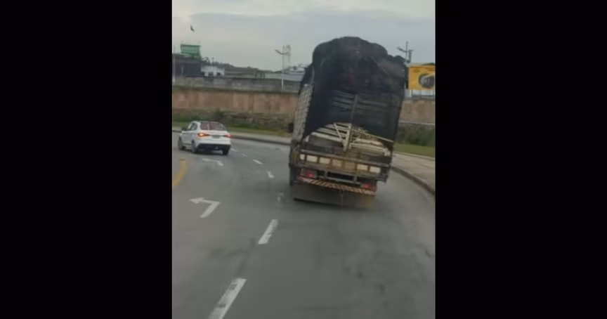 O flagra foi feito por ocupantes de um veículo que vinha atrás do caminhão. Por vários momentos, a carga quase tomba, correndo o risco de gerar acidentes.