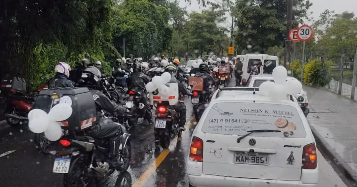 Nem a chuva que cai sobre Blumenau deste o início desta sexta-feira, 7, foi suficiente para reduzir a força da carreata organizada para homenagear as vítimas da chacina no CEI Cantinho do Bom Pastor.