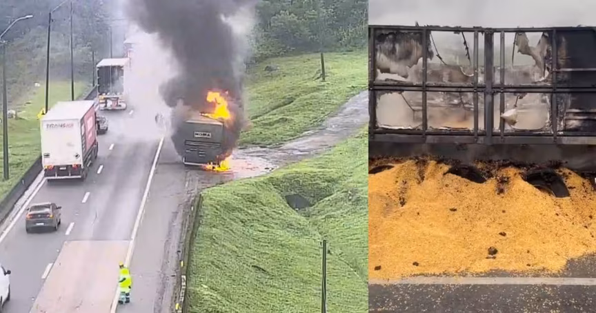O motorista, ao perceber o incêndio na carreta, desconectou o veículo e o levou ao acostamento. Quando os bombeiros chegaram, a carreta estava em chamas.