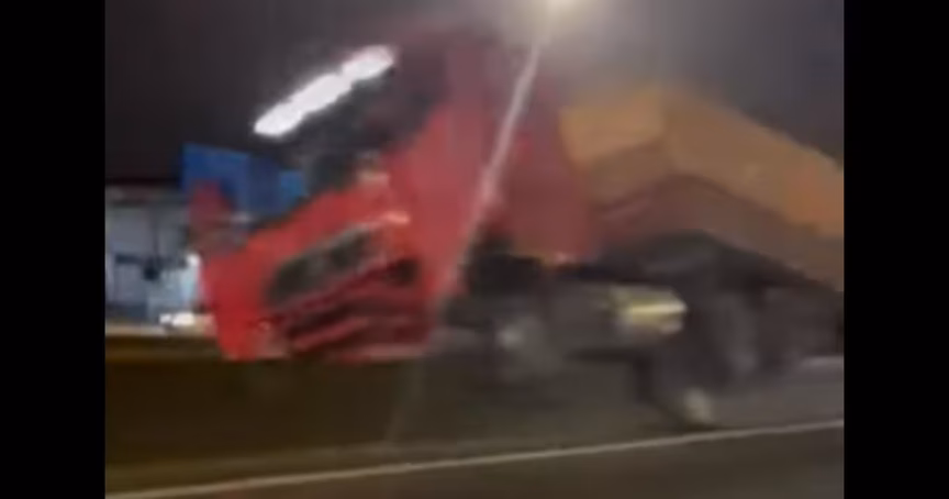 VÍDEO – Carreta e carro colidem na BR-101 e duas pessoas são levadas ao hospital em SC