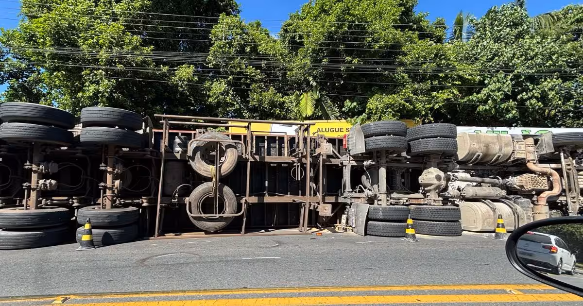 VÍDEO – Carreta que tombou em Guabiruba segue no local; Corpo de Bombeiros divulga novas informações