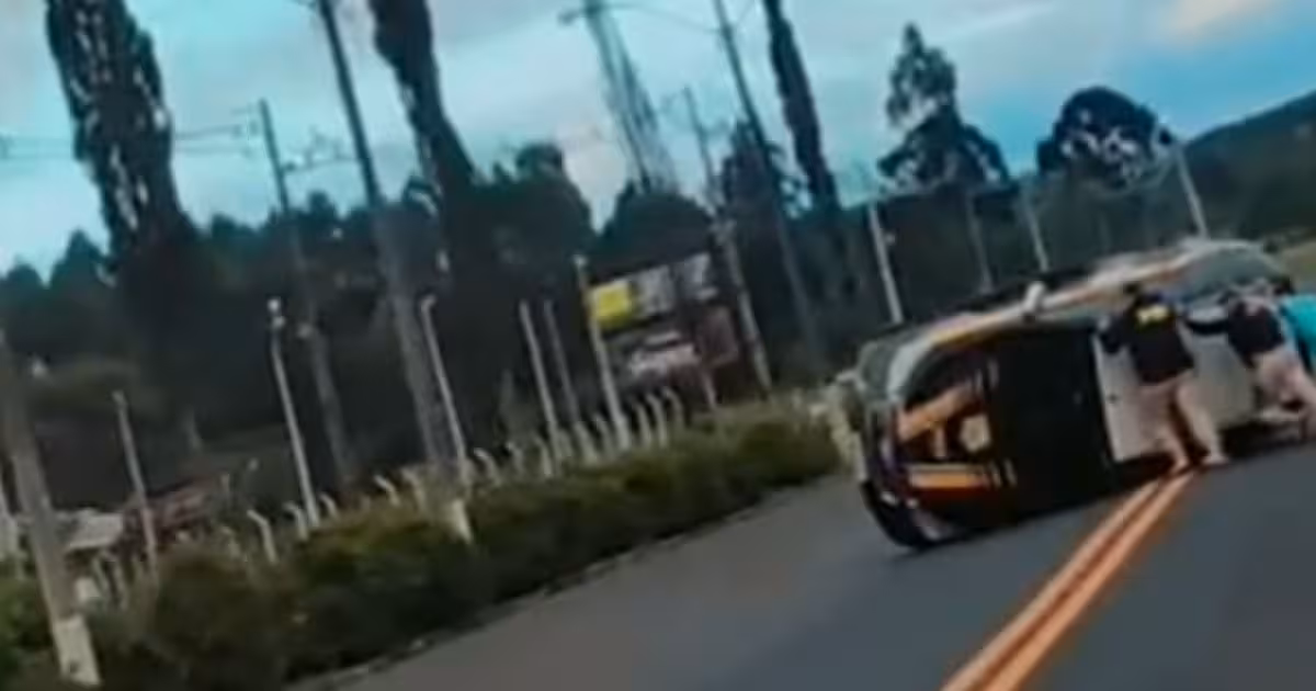 VÍDEO – Carro da PRF tomba na BR-280, no Norte de Santa Catarina