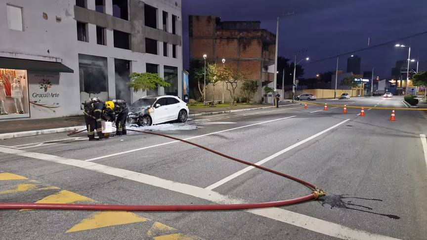 Um Porsche Macan Turbo foi consumido por um incêndio na Quarta avenida, em Balneário Camboriú, na madrugada desta segunda-feira, 30. O acidente aconteceu por volta das 5h20.