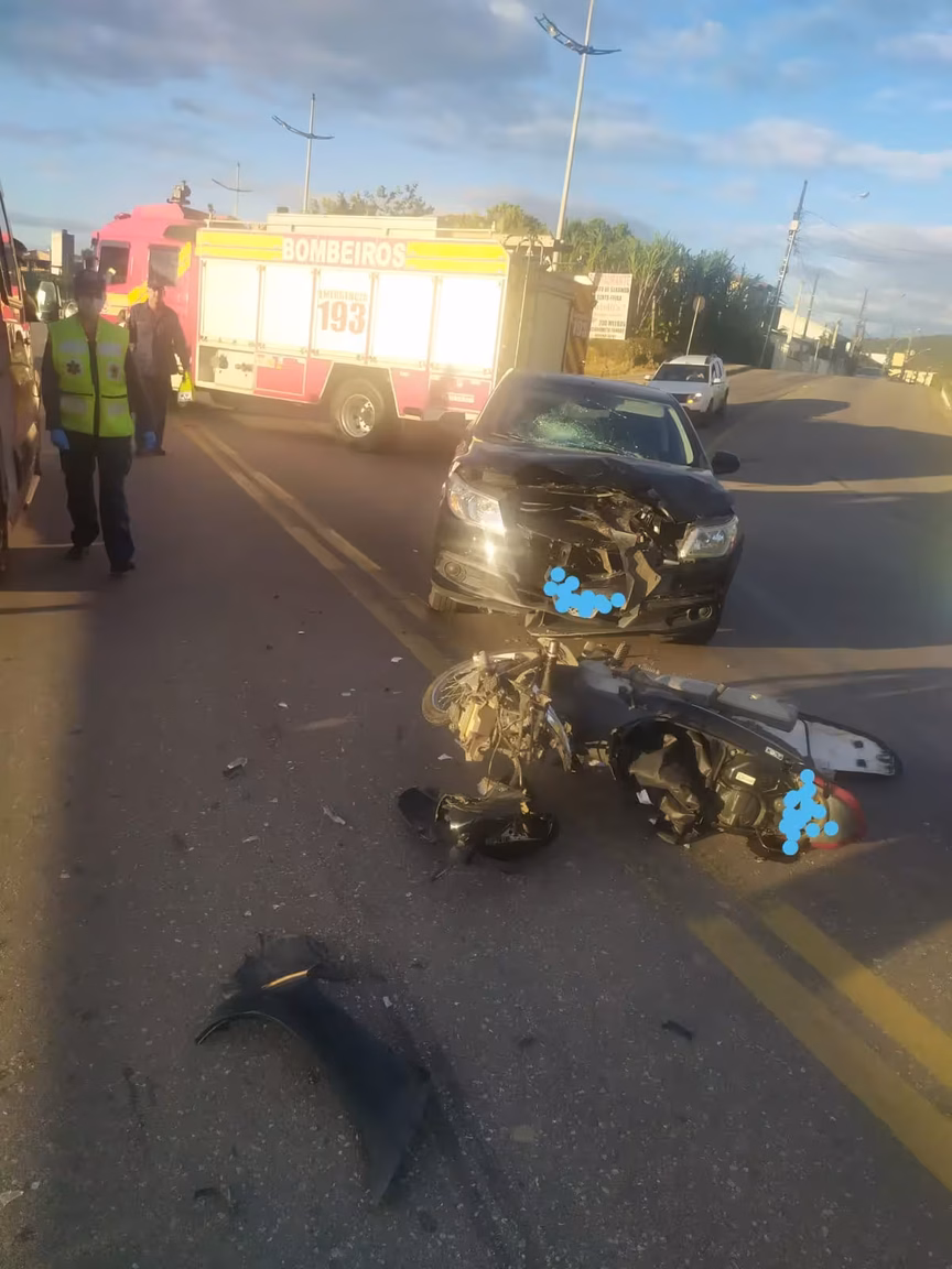 Quando estava entrando na via percebeu a moto, que estava no sentido do bairro Limoeiro, mas não conseguiu desviar a tempo e os veículos colidiram.