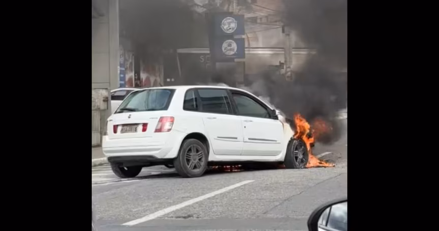 VÍDEO – Carro pega fogo no Centro de Brusque