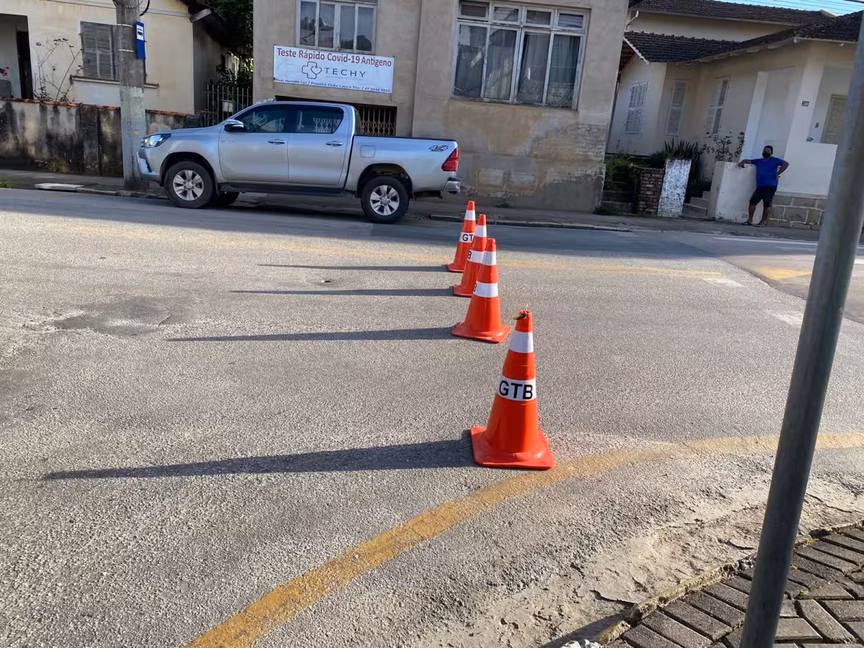 A motorista dirigia em direção ao bairro Guarani quando colidiu. O veículo ainda está no local, por isso o trânsito está sendo desviado para a rua Manuel Tavares. Guarda de Trânsito de Brusque aguarda a chegada do guincho para a liberação da via.