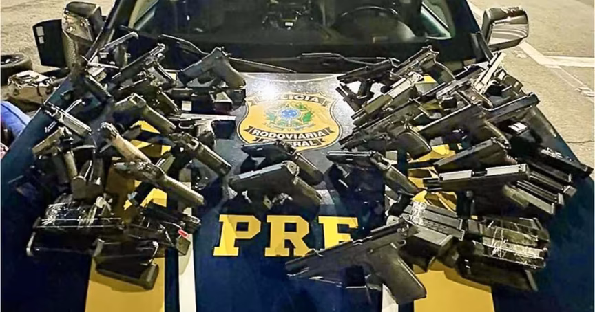 A Polícia Rodoviária Federal (PRF), em conjunto com a Força Integrada de Combate ao Crime Organizado no Paraná (FICCO/PR), apreendeu, na sexta-feira, 4, 28 pistolas e 59 carregadores com um casal de 30 anos, na BR-277, em Balsa Nova (PR). O objetivo do casal era entregar as armas em um posto de combustíveis em Balneário Camboriú, como pagamento de uma dívida contraída junto ao crime organizado.