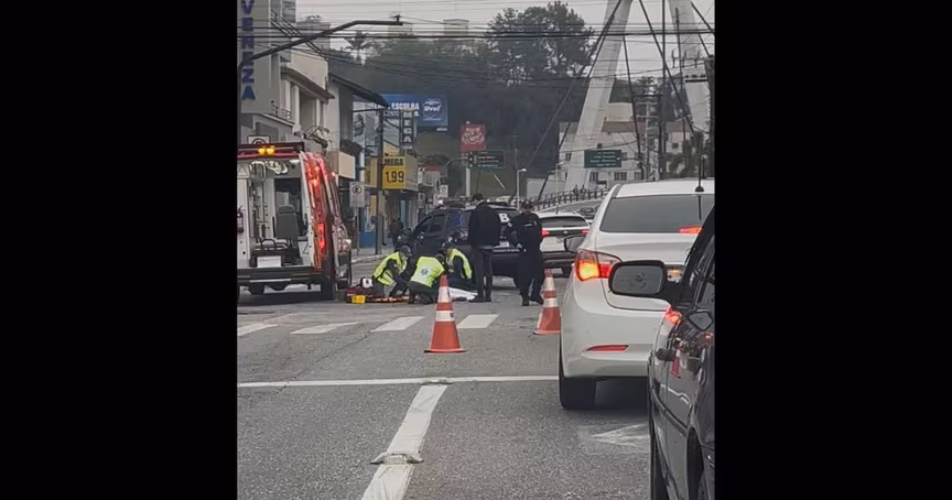 O acidente ocorreu no cruzamento entre a Gustavo Schlösser e a avenida Lauro Muller. O Corpo de Bombeiros foi acionado e esteve no local fazendo o atendimento da vítima, um homem. Uma equipe da Guarda de Trânsito também esteve no local.