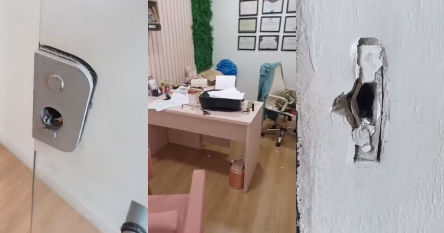 “Nos deparamos com uma cena de furto. A porta estava arrombada. Eles conseguiram quebrar a trava de segurança. Adentraram o local de trabalho da minha esposa, reviraram e levaram um notebook”, afirma.