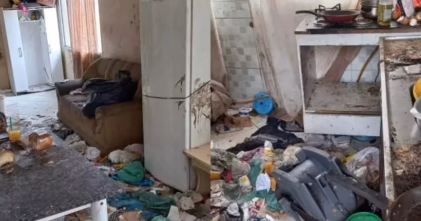 De acordo com a PM, havia lixos e resto de comida em todos os cômodos da residência