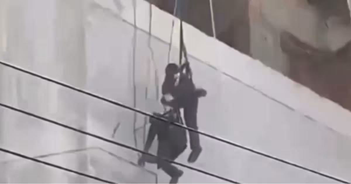 Eles utilizavam equipamentos de segurança e foram puxados para dentro do prédio. Apenas um deles sofreu ferimentos nas mãos.