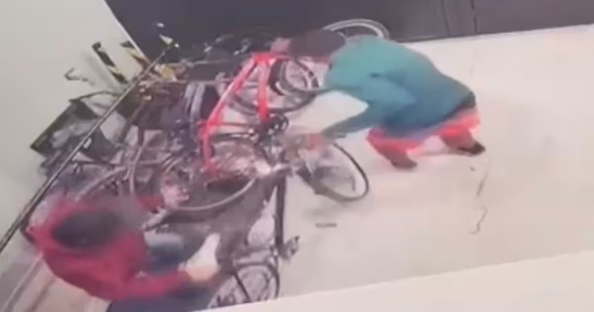Uma câmera de monitoramento flagrou duas bicicletas sendo furtadas em uma padaria no bairro Santa Rita, em Brusque.