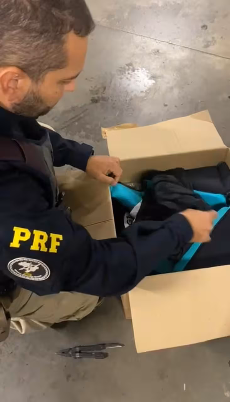 Dentro da caixa, a PRF encontrou roupas de neoprene com peso e costuras fora do padrão. No interior das peças havia duas embalagens com um pó branco, totalizando 538 gramas de cocaína.