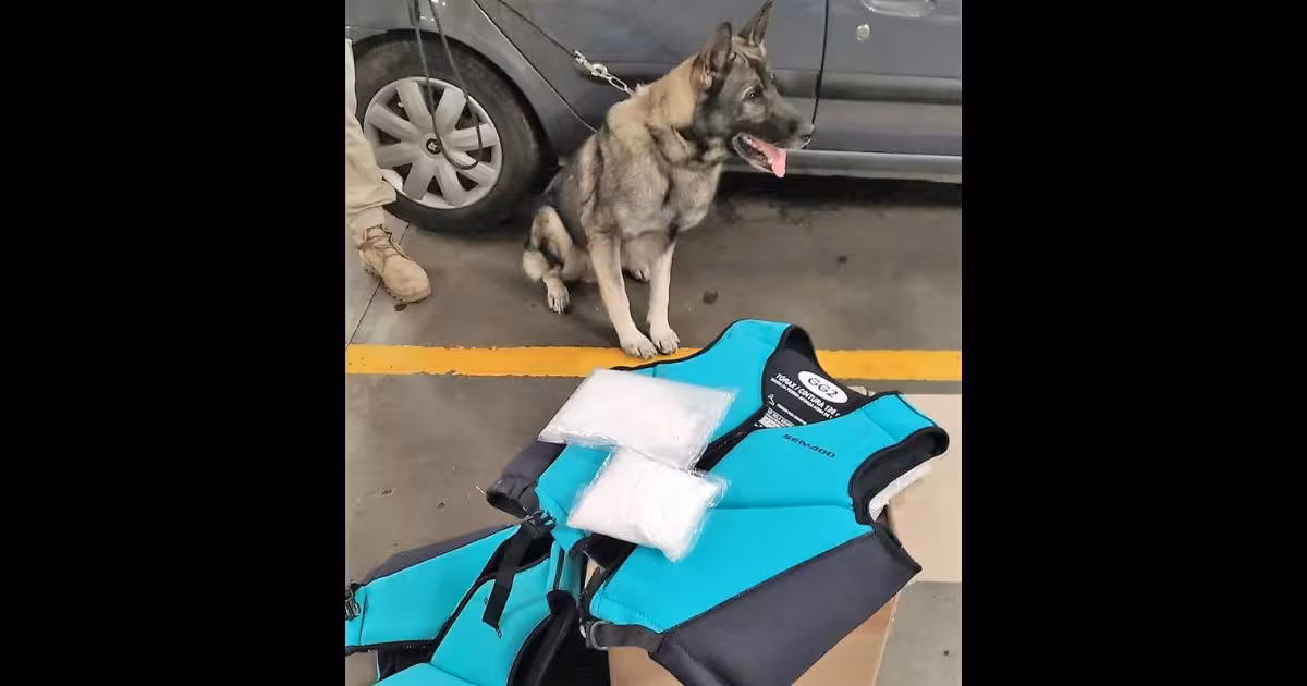 Entre várias encomendas, o cão Echo deu sinal positivo para entorpecente na caixa despachada pela mulher.