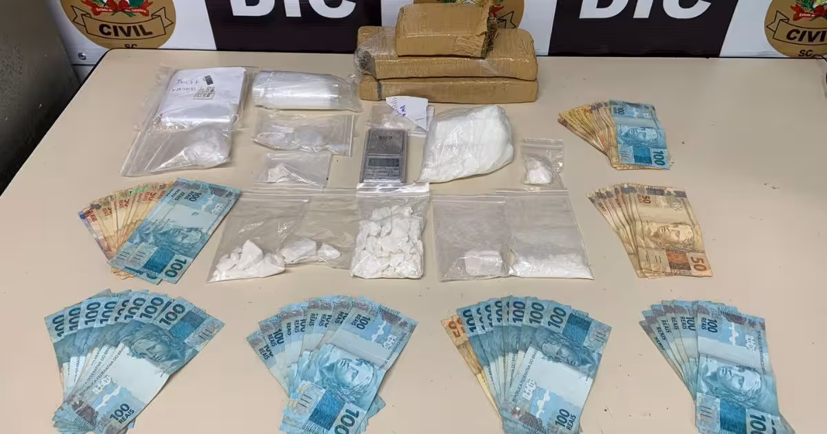 Os policiais civis apreenderam aproximadamente 2,3 quilos de maconha e 650 gramas de cocaína, uma balança, além de materiais utilizados para preparo, fracionamento e venda de drogas. Também foram encontrados mais de R$ 10 mil em espécie.