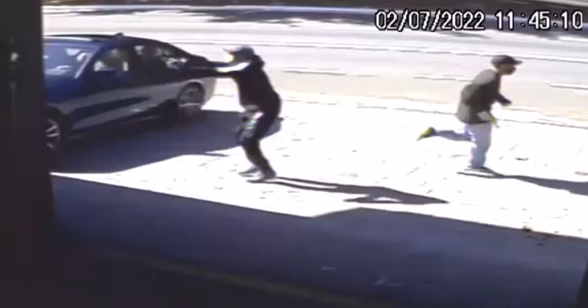 A vítima estacionou o carro (BMW de cor azul) em frente a uma loja, na qual entrou. Porém, enquanto estava no estabelecimento, foi surpreendido por dois criminosos que queriam levar o relógio de luxo do empresário.
