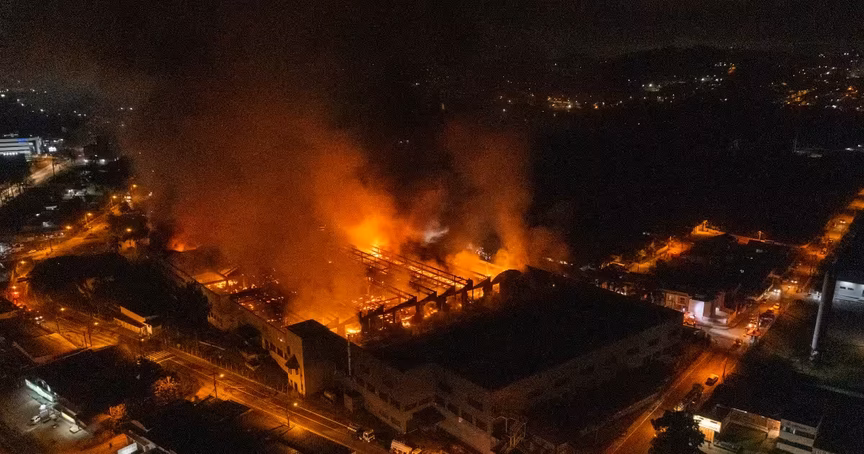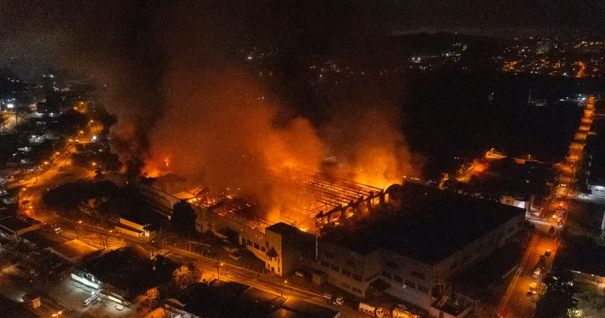 Na manhã desta sexta-feira, 8, o Corpo de Bombeiros continua trabalhando para combater o incêndio de grandes proporções que atingiu a fábrica de bicicletas. De acordo com os bombeiros, o incêndio está controlado, apesar da carga de fogo da edificação ser elevada.