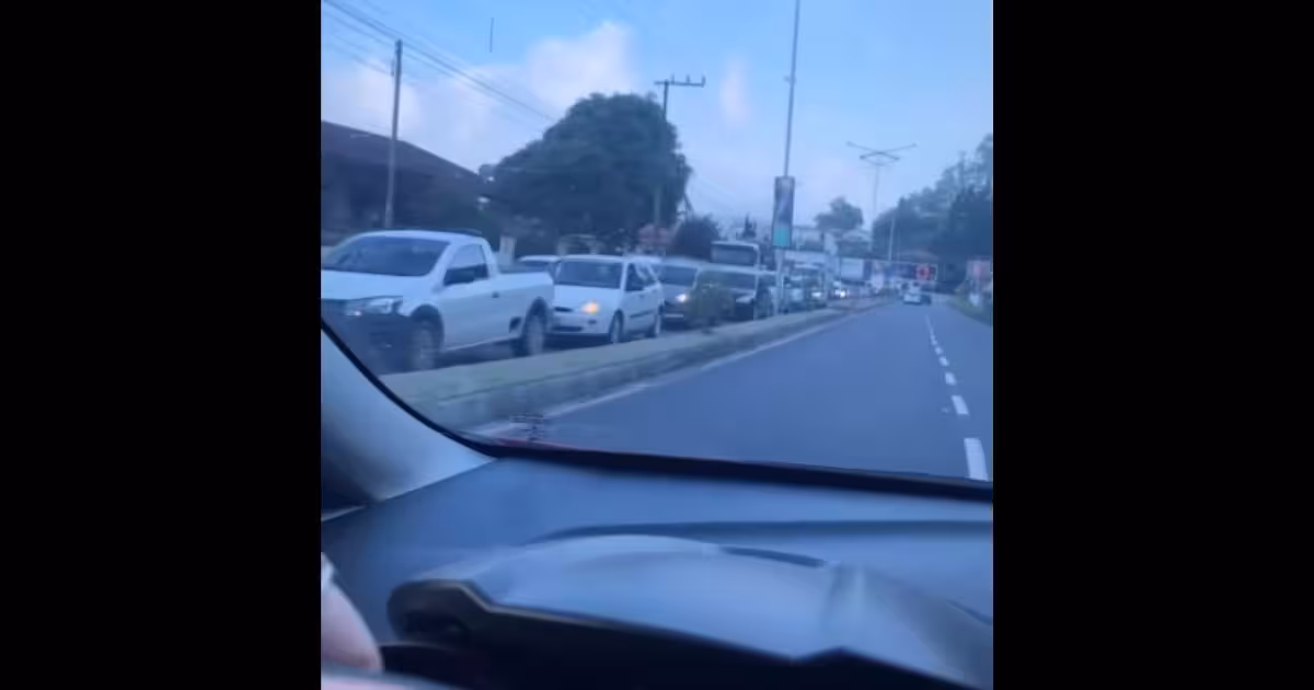 VÍDEO – Fila é registrada em Guabiruba após tombamento de container