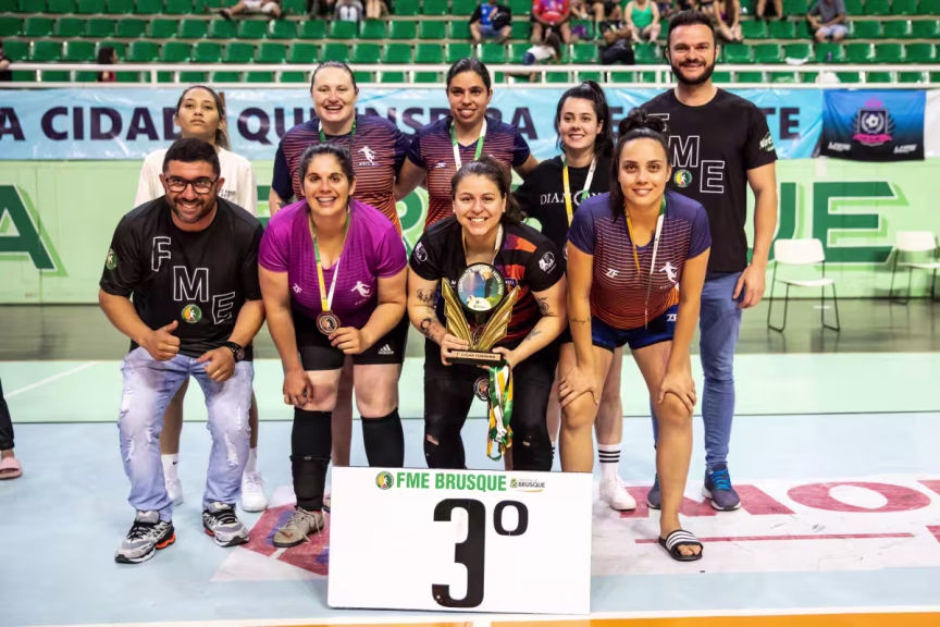 Após a retomada do jogo, equipe Brusque Futsal, que já tinha marcado três gols no primeiro tempo, conquistou o campeonato com o placar de 9 x 0.