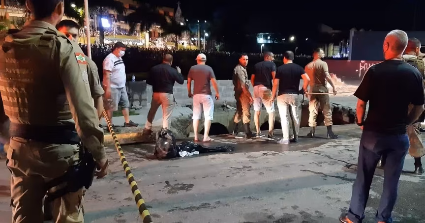 VÍDEO – Calçada desaba e pessoas caem em rio durante abertura de Natal em Joinville