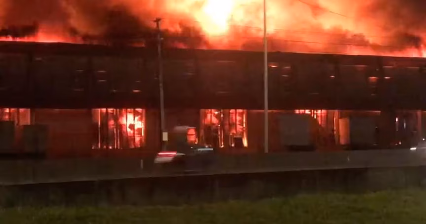 VÍDEO – Galpões às margens da BR-101 são atingidos por incêndio de grandes proporções