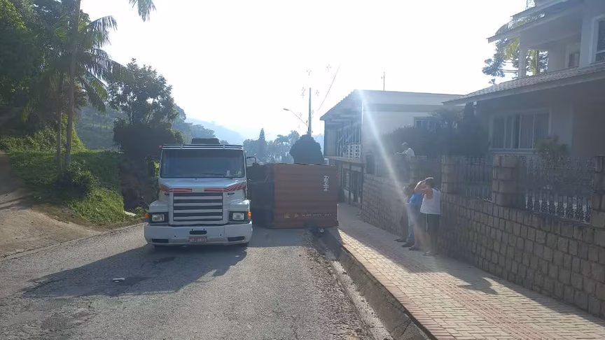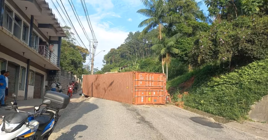 A Guarda de Trânsito de Brusque (GTB) divulgou novas informações sobre o tombamento de um container de carreta na rua São Pedro, na manhã desta quinta-feira, 27. A via segue totalmente interditada.