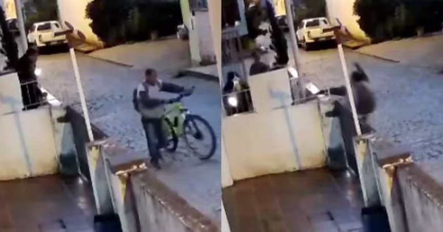 VÍDEO – Homem desce de bicicleta, empurra portão e ameaça jovens com uma faca no Santa Terezinha, em Brusque